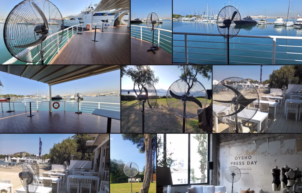 Η Sovereign έχει προσαρτήσει εδώ και χρόνια στις υπηρεσίες την ενοικίαση ανεμιστήρων ξηράς λειτουργίας σε πελάτες που έχουν οργανώσει πολύ διαφορετικές εκδηλώσεις μεταξύ τους οι οποίες λαμβάνουν τόπο σε πολύ διαφορετικούς και μοναδικούς χώρους κάθε φορά, εσωτερικούς, στεγασμένους και υπαίθριους.